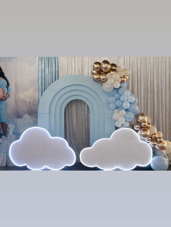 Arch, Clouds, Marquee Letters: Soiree Decor and Event Rentals